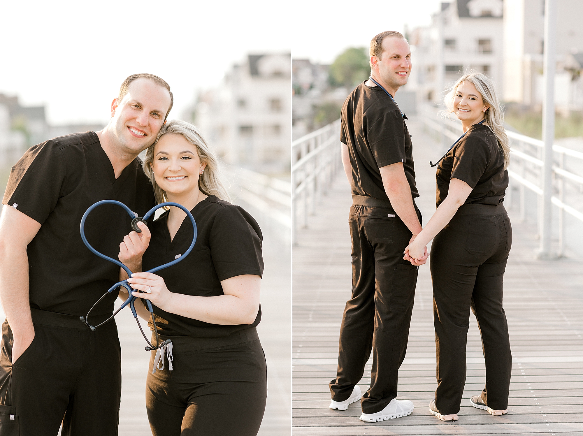 To kick off their session at Ventor Beach, Megan and Tyler wanted to capture some photos that documented what they do every day. So, we walked on the boardwalk and they showed off their stethoscopes. We made some cute hearts with their stethoscope and showed off Megan’s GORGEOUS ring!!! After their more casual photos, Megan and Tyler changed into new outfits.